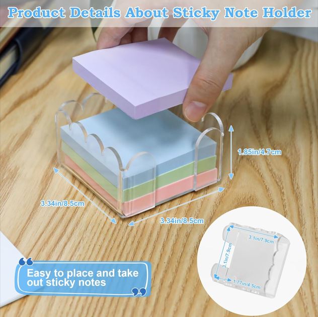 Clear Acrylic Sticky Note Holder: Made from premium 3mm industrial-grade acrylic, this holder offers crystal-clear visibility and durability. A stylish and practical addition to any home, office, or classroom