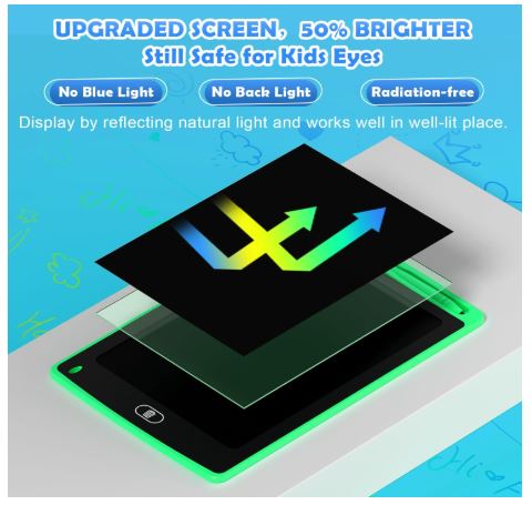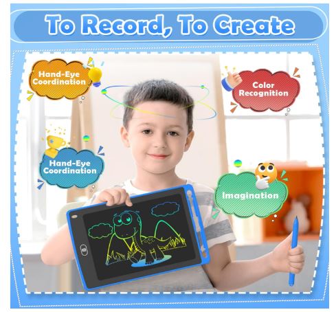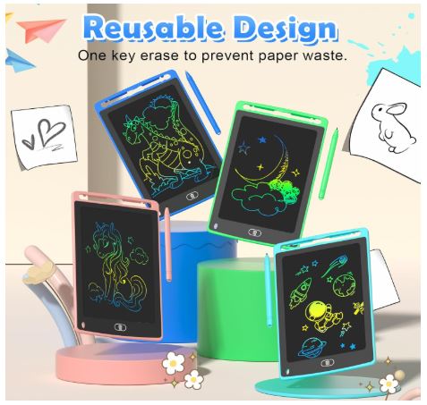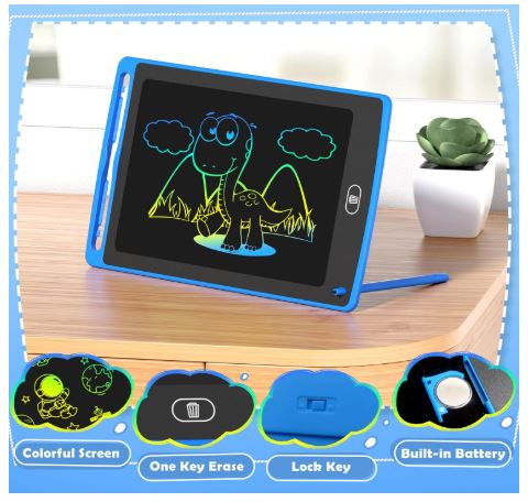 8.5 Inch Colorful Lcd writing Tablet: TQU kids LCD doodle board is a creative education and learning toy, perfect support for drawing, writing, spelling, math, remark, and notes which can let your kids freely release their natural instincts. With erase button on the front and lock switch. You can draw and erase easily by pressing the button on the front of the board. The pen fits snug on top of tablet and it will not come loose.