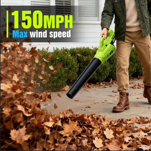 • 【High-Performance Motor】Engineered with an advanced high motor, this leaf blower generates a powerful, concentrated air vortex reaching speeds of 150 MPH for maximum clearing force. The superior motor design ensures exceptional durability and consistent performance with minimal energy loss.