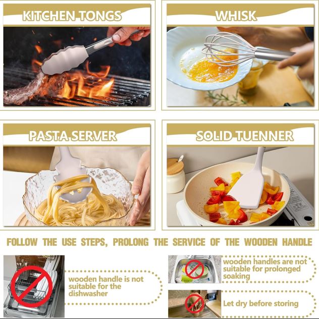 GREAT PRESENTS SET This kitchen utensil set comes with everything you need to get started cooking. A utensils holder can help you organized your kitchen tools well. If you moving or just need a new set of cooking utensils highly recommended. Perfect for house warming presents, wedding presents, mother’s day presents, holiday presents and anyone else on your presents list